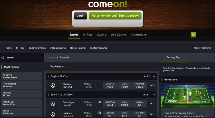 5. ComeOn: Atractivo local con generosas recompensas adicionales